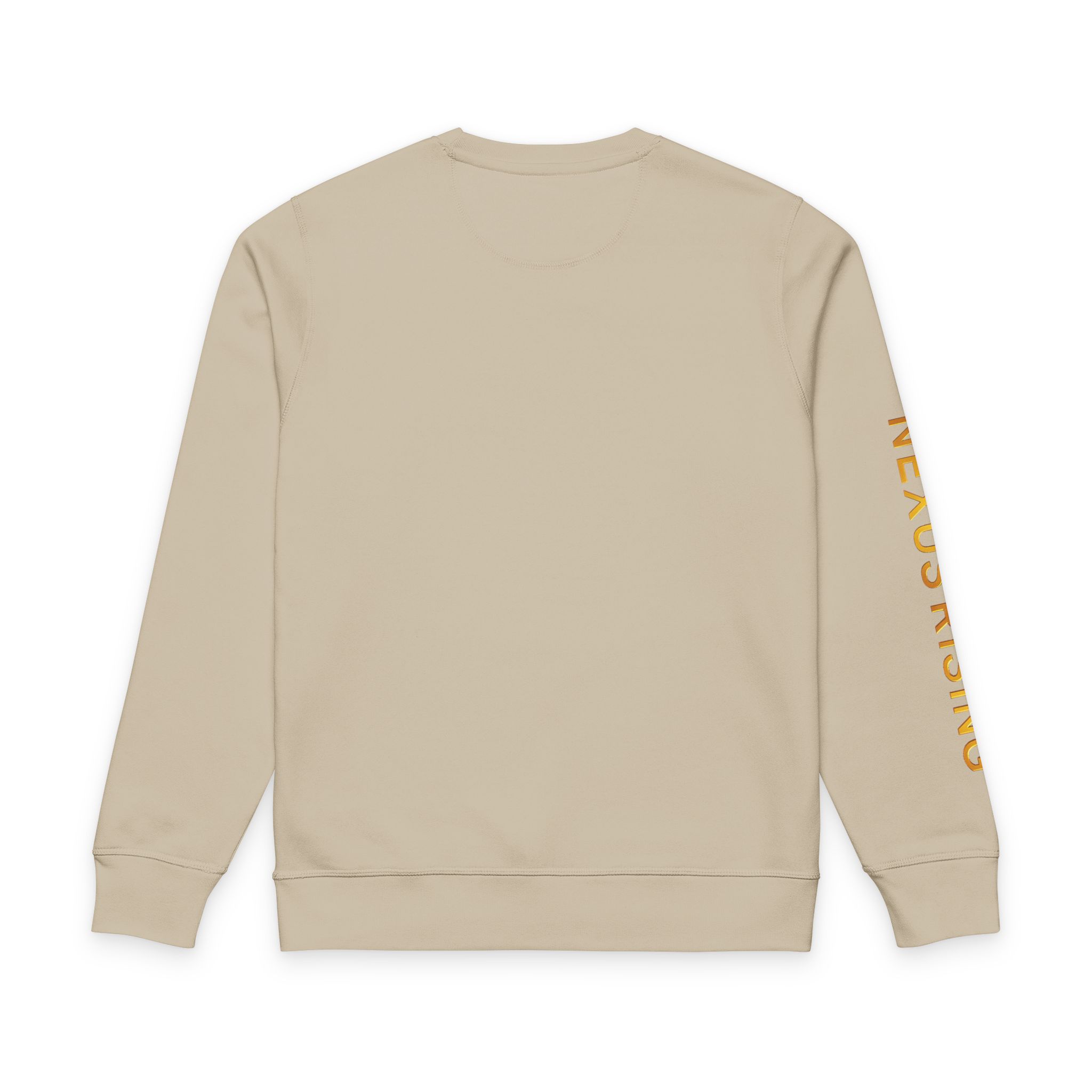 Clean lines and quiet confidence—this mid-weight sweatshirt carries a subtle, elevated energy. Soft organic cotton blended with recycled polyester gives a smooth hand and a lived-in feel from the first wear. A warm, circular emblem sits over the heart while slender gold lettering runs down the sleeve, lending an understated, modern-brand look that reads as both mindful and aspirational. It layers easily over tees for morning coffee runs and stands out during late-night rooftop conversations. For those who value responsible materials and thoughtful design, this sweatshirt becomes a familiar piece: comfortable enough for daily wear, refined enough to wear when you want to feel composed and steady.